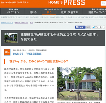 「建築研究所が研究する先進的エコ住宅「LCCM住宅」を見てきた」という「LCCM住宅」を取り上げた記事がHOME’S PRESSに掲載されています。