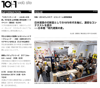 北山恒氏による(建築家/横浜国立大学Y-GSA校長)2014ヴェネチア・ビエンナーレ国際建築展に関する寄稿文「日本建築の切断面としての1970年代を軸に、濃密なコンテクストを提示─日本館「現代建築の倉」」が、10+1 web siteに掲載されています。