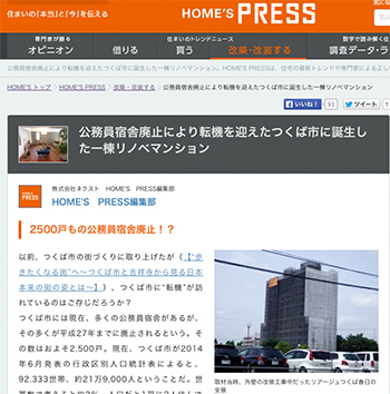 つくば市にある元大手メーカーの企業寮がリビタのプロデュースのもと一棟リノベされたマンションを紹介している記事「公務員宿舎廃止により転機を迎えたつくば市に誕生した一棟リノベマンション」が、HOME’S PRESSに掲載されています。