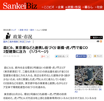 →『森ビル、東京都などと連携し街づくり 新橋・虎ノ門で省CO2型建築に注力』