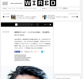 「建築家ビャルケ・インゲルスが描く「未来都市」のつくりかた」という、WIREDのVOL.10に掲載された特集記事の内容を全文転載した記事がWIRED.jpに掲載されています。
