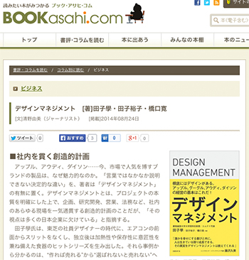 田子學氏、田子裕子氏、橋口寛氏による「デザインマネジメント」の書評がBOOK.asahi.comにて掲載されています。