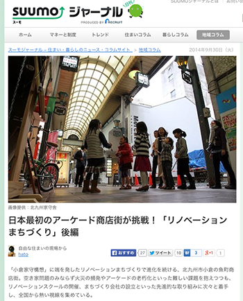 「日本最初のアーケード商店街が挑戦!「リノベーションまちづくり」」という北九州市小倉の魚町商店街の事例を取り上げた記事が、スーモジャーナルに掲載されています。