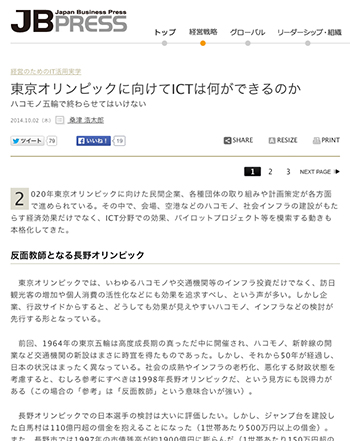 「東京オリンピックに向けてICTは何ができるのか ハコモノ五輪で終わらせてはいけない」という記事がJBpressに掲載されています。