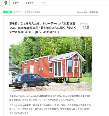 「家を持つことを考えたら、トレーラーハウスに行き着いた。greenz.jp編集長・鈴木菜央さんに聞く「小さくて大きな暮らし方」」という記事が、グリーンズに掲載されています。