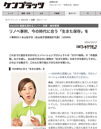 →『リノベ事例、今の時代に合う「生きた保存」を|日経BP社 ケンプラッツ』