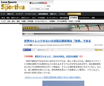 「世界のトレンドからいけば国立競技場は「改修」である」という杉山茂樹氏(スポーツライター)による記事がweb Sportivaに掲載されています。