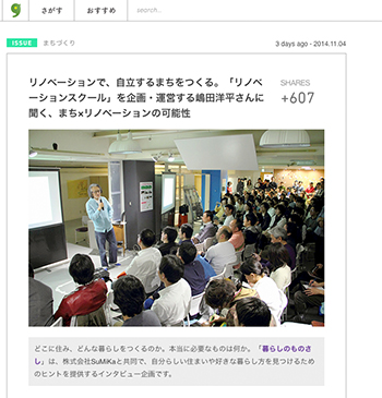→『リノベーションで、自立するまちをつくる。「リノベーションスクール」を企画・運営する嶋田洋平さんに聞く、まち×リノベーションの可能性』