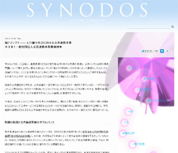 木下斉氏による寄稿文「稼ぐインフラ ――人口縮小社会における公民連携事業」がシノドスに掲載されています。