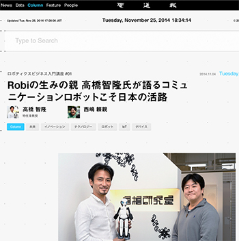 →『Robiの生みの親 高橋智隆氏が語るコミュニケーションロボットこそ日本の活路』