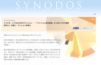 国土交通省が5年に一度、公表する「マンション総合調査」から、マンションの建替え・耐震・防災・見守り・専門家活用などをキーワードに、概観という岡本正氏(弁護士・マンション管理士)による寄稿文「どうする、どうなる日本のマンション―『マンション総合調査』から見えてきた課題」が、シノドスに掲載されています。
