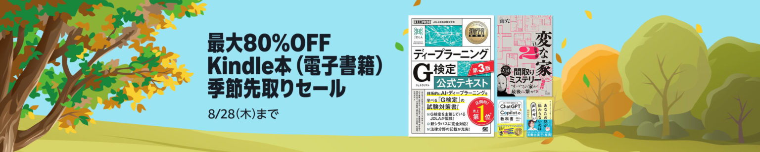 現在開催中の「Amazon Kindle本(電子書籍)季節先取りセール」では、人気書籍が日替わりで大幅割引中。セール期間は2025年8月28日(木)までで、毎日更新される「Kindle Daily Deals」では最大80%OFFのタイトルも登場します。