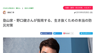 都市防災 登山家・野口健さんが指南する、生き抜くための本当の防災対策 (スーモジャーナル) 「登山家・野口健さんが指南する、生き抜くための本当の防災対策」という記事が、スーモジャーナルに掲載されています。 →『登山家・野口健さんが指南する、生き抜くための本当の防災対策』 2019.08.04 都市防災ニュース@アマゾンリンク切れ(adsystem)