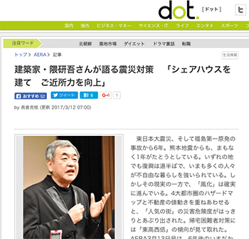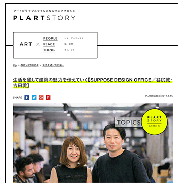 「生活を通して建築の魅力を伝えていく【SUPPOSE DESIGN OFFICE/谷尻誠・吉田愛】」という谷尻誠氏と吉田愛氏に話をきいている記事が、PLART STORYに掲載されています。 →『生活を通して建築の魅力を伝えていく【SUPP...