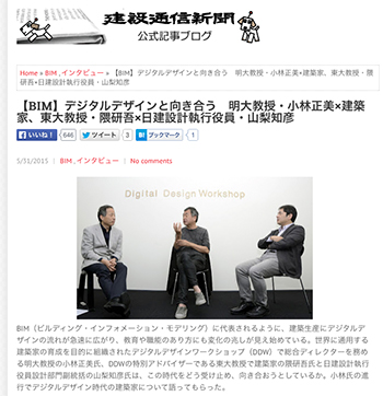 プロダクト・設備 【BIM】デジタルデザインと向き合う 明大教授・小林正美×建築家、東大教授・隈研吾×日建設計執行役員・山梨知彦 (建設通信新聞の公式記事ブログ)