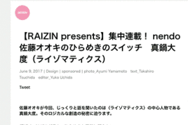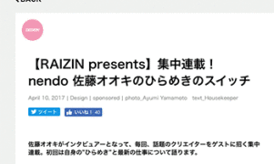 「デザインの秘密に迫る(nendo 佐藤オオキ氏)」という佐藤オオキ氏がゲストとして出演しているテレビ番組ワールドビジネスサテライトの動画がテレ東BIZにて公開されています。 →『デザインの秘密に迫る(nendo 佐藤オオキ氏)』